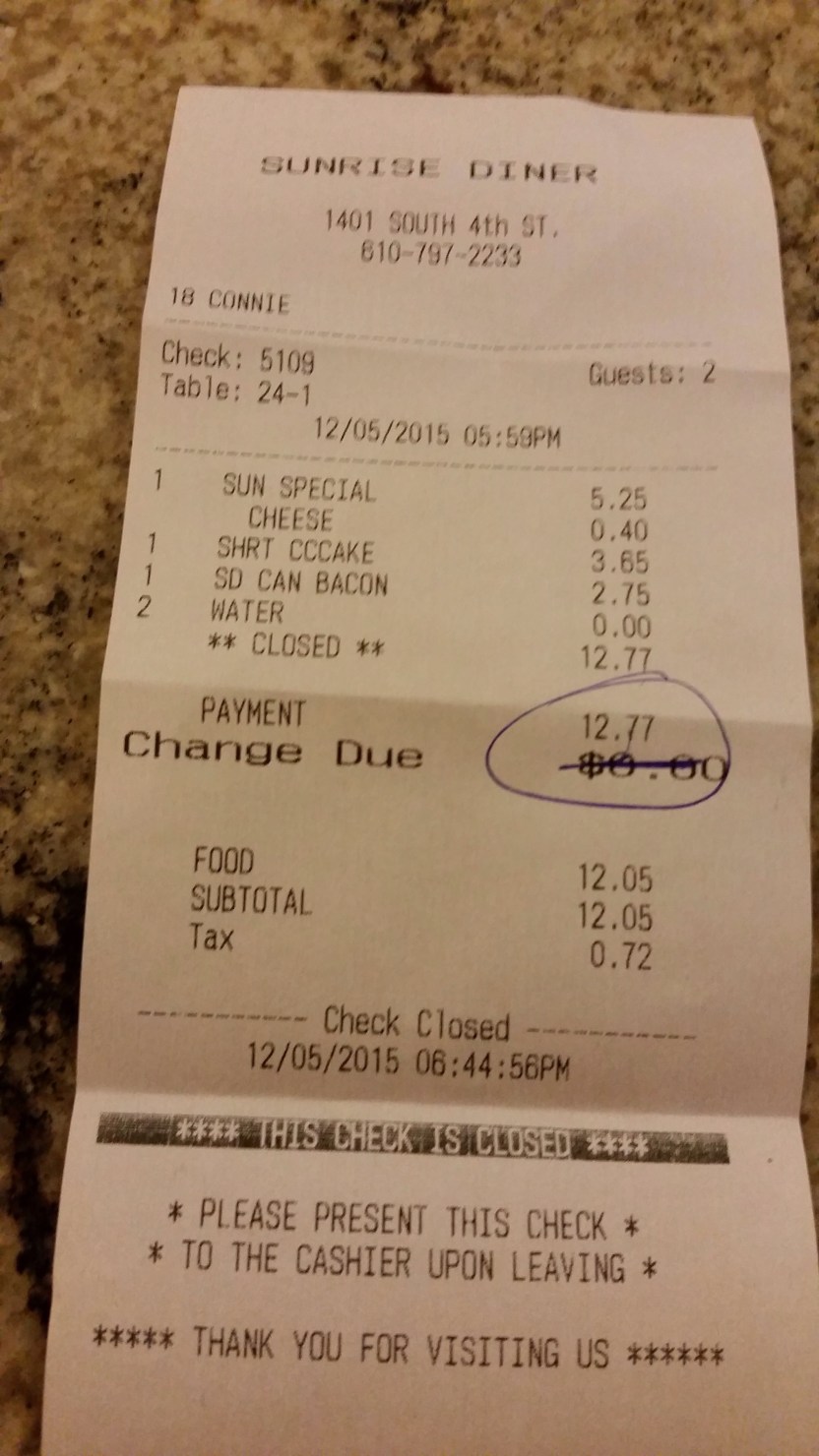 My 12-year-old and I walked out of the restaurant confused, unsure why a restaurant that smelled and looked like that would be fully booked. Due to limited time, we settled at this roadside diner, Sunrise Diner on South 4th Street. We figured that we are in middle American and a diner is probably the safeties choice.