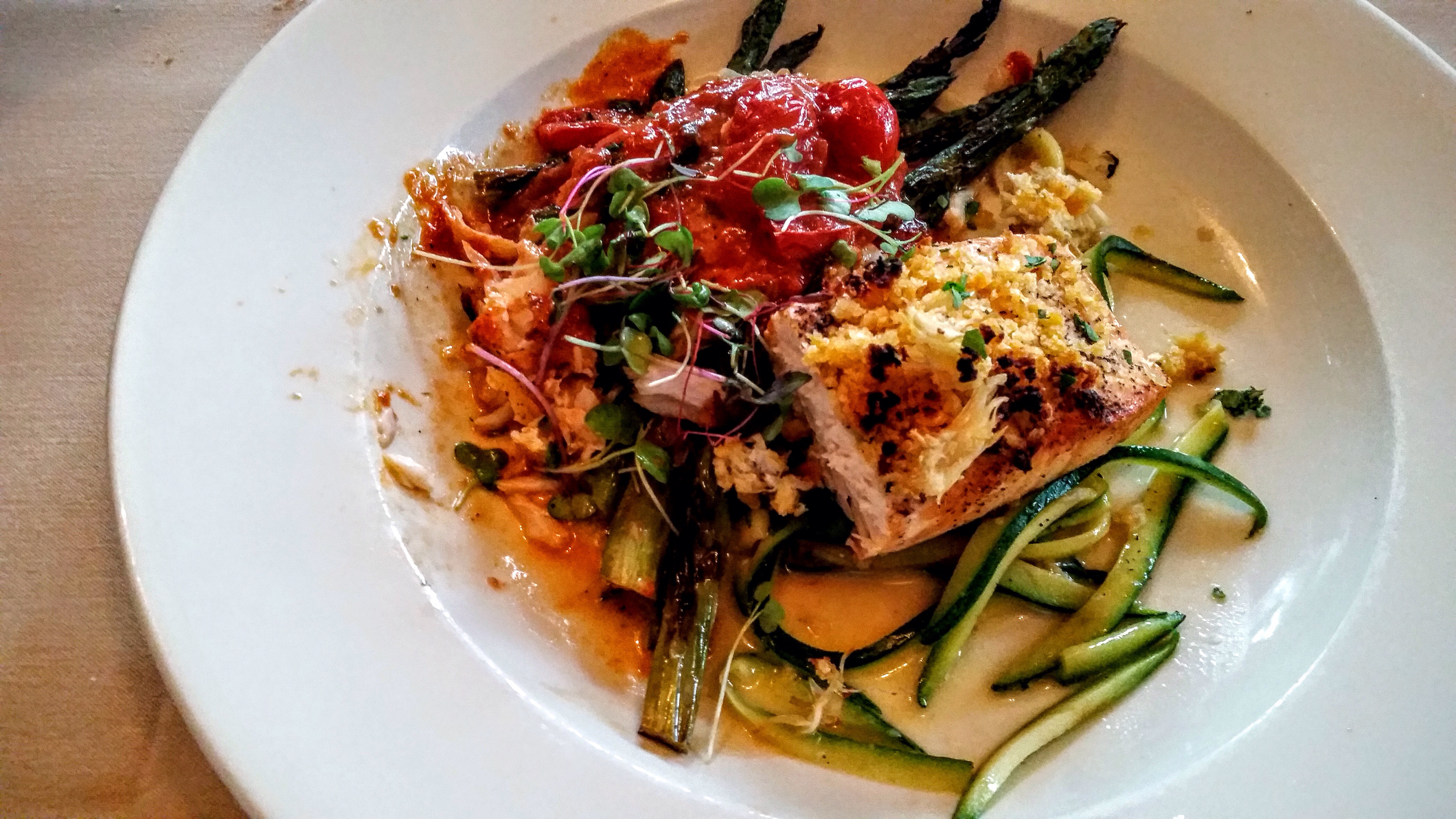 Special: Red snapper with tomato sauce and salmon on a bed of zucchini. Salmon was a little dry but red snapper was moist.