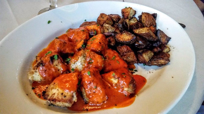 Chicken Piccante: Classic chicken francese sautéed with cherry peppers topped with melted mozzarella over a bed of sautéed spinach. Kerri – I Don’t think this is Chicken Martine.