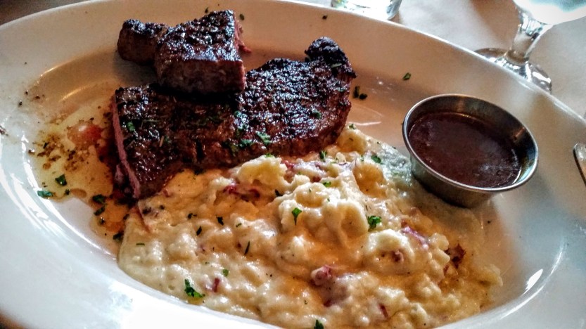 NY Strip Steak: 14oz. Prime N.Y. Strip. Served with creamy mashed potatoes & cabernet sauce. Steak was no cooked to the temperature that was ordered. It’s over done.