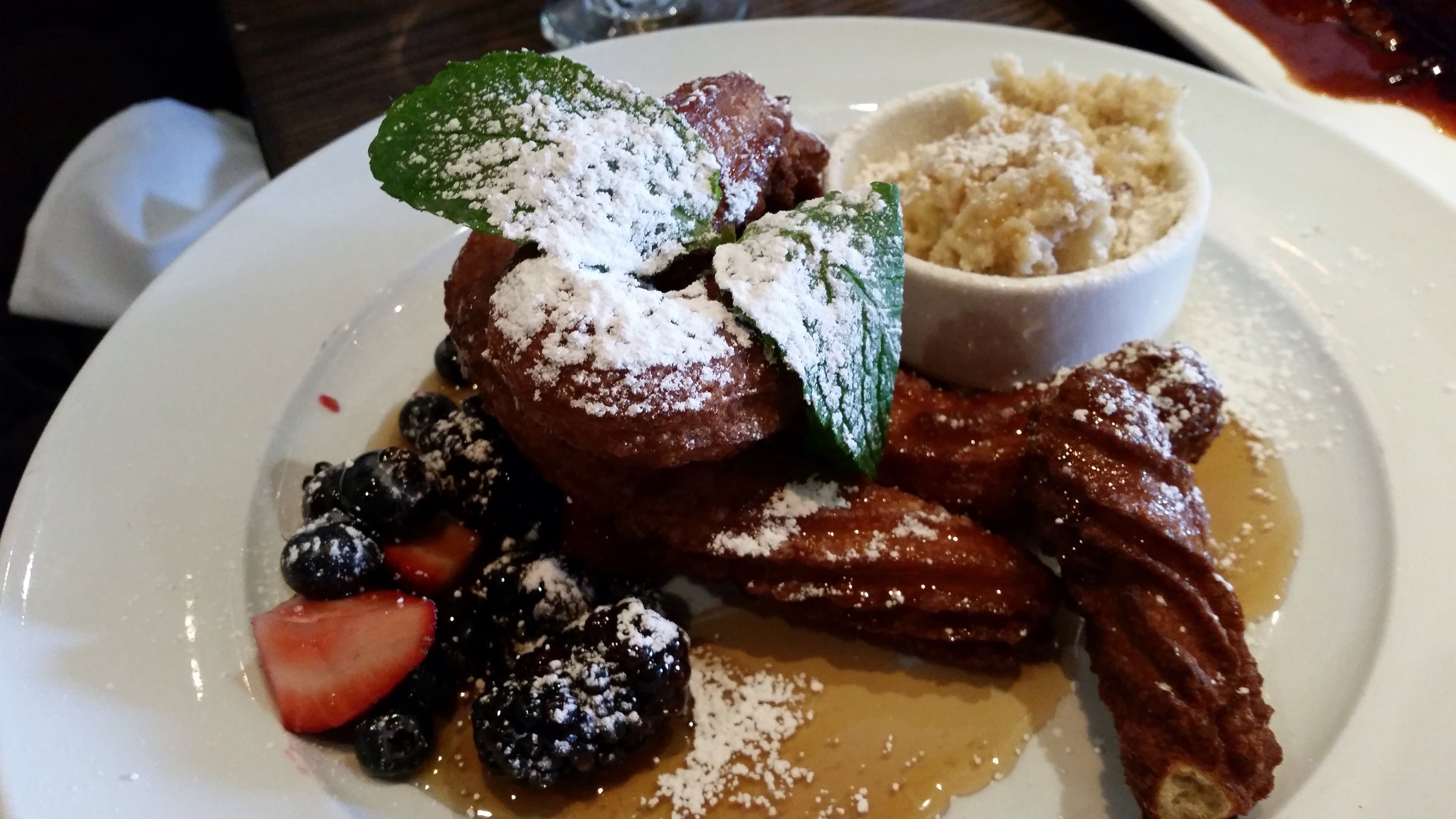 CHURROS / ‘Spanish doughnuts’ with warm chocolate-hazelnut dip. I ordered the churros for my friend to try but the blackberries turned out to be more superior. The churros were denser than what I would like.
