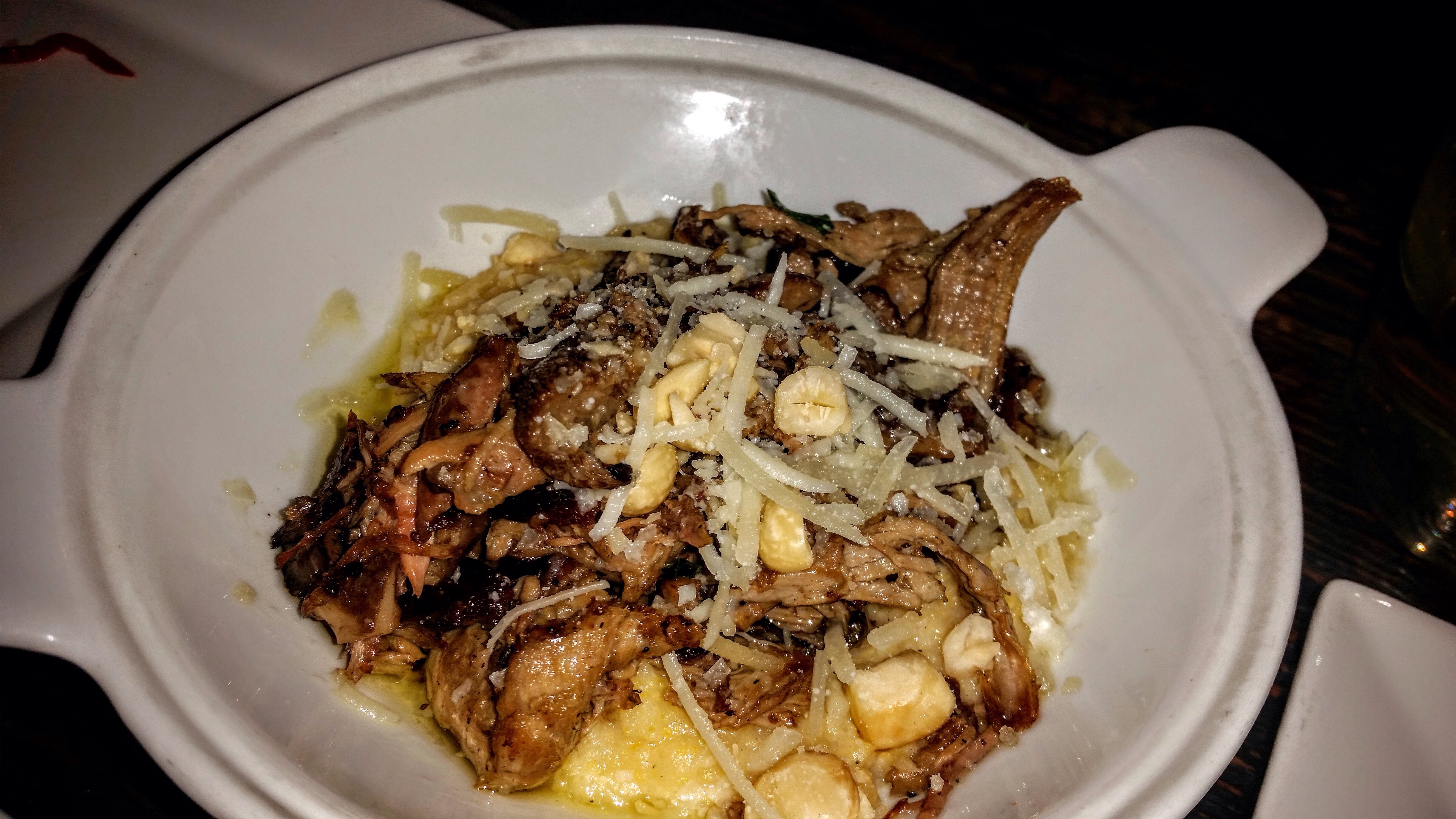 DUCK CONFIT POLENTA: Duck confit, mushroom ragu, Asiago polenta, toasted hazelnuts, Parmigiana Reggiani. I’ll be real honest here. The dish sounded good but was not terribly memorable. The polenta was watery like baby food. I remember digging for the duck. I love duck confit and wanted to love this duck, too.