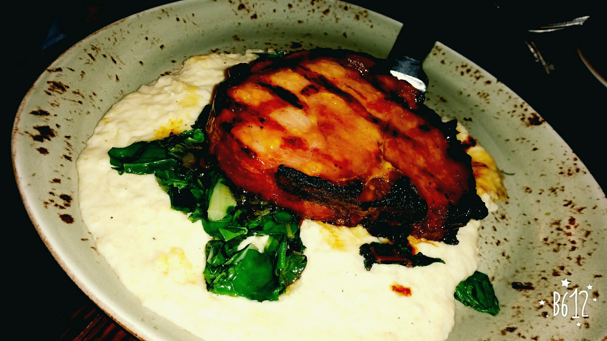 SMOKED PORK CHOP / grits / chard / peach preserves. The glaze and the execution were what made the dish stand out. The meat was tender, juicy and sweet- like all good tropical fruits. I was impressed by how tender it was because this chop was thick and wide.